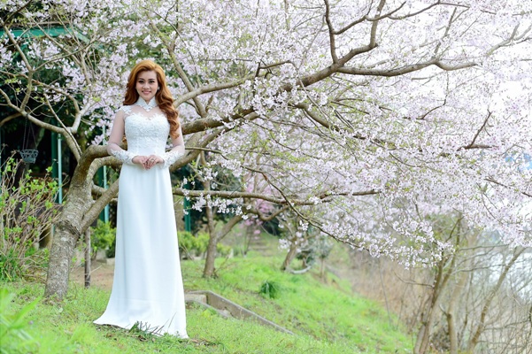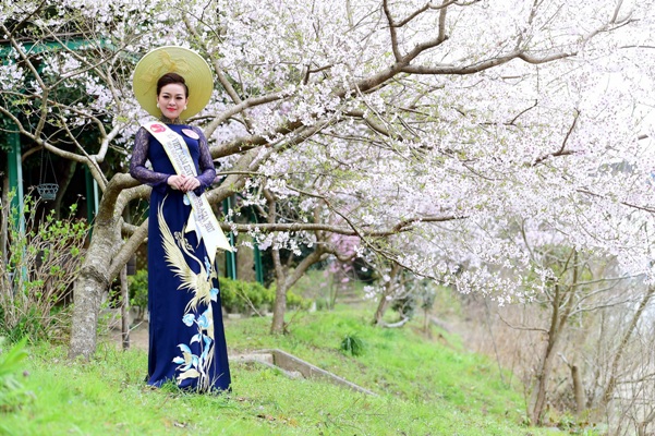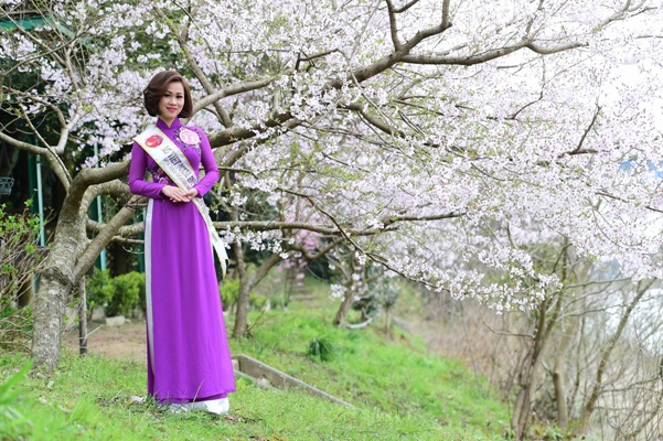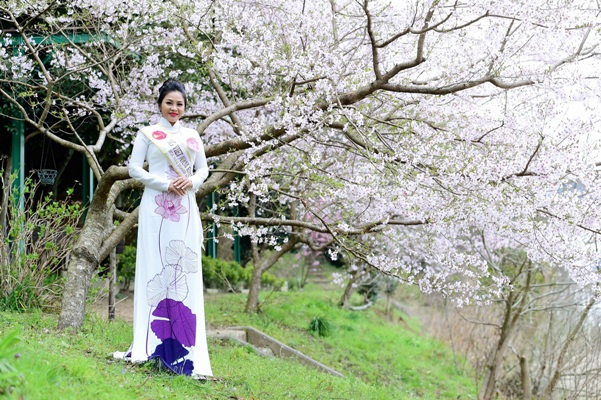 Những tà áo dài của thí sinh "Hoa hậu Doanh nhân Người Việt Châu Á 2017" thướt tha trong khung cảnh lãng mạn của vườn hoa anh đào nở rộ. Các nữ doanh nhân tài sắc đã cùng cảnh trí làm nên bức tranh chất chứa hồn Việt hòa lẫn cùng đặc trưng của xứ sở anh đào.