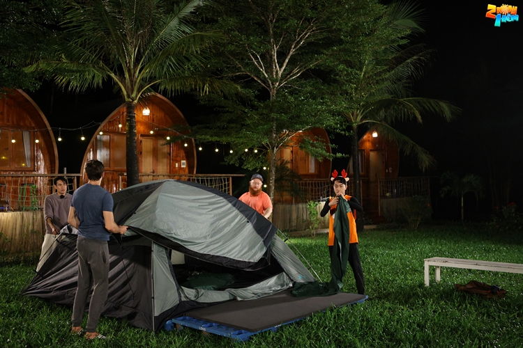 Sau màn chơi game “tam sao thất bản” đầy bất ổn, bộ ba Kiều Minh Tuấn – Cris Phan – Phúc Mập đành phải ngậm ngùi ngủ ngoài trời trước sự đắc thắng của các đội còn lại. Với kinh nghiệm ngủ “khổ” dày dặn, Kiều Minh Tuấn đứng yên chỉ đạo đồng đội dựng lều khiến Cris Phan bức xúc “Do anh diễn đạt dở quá!”, tuy hai người đều luôn miệng đổ thừa cho đối phương nhưng cả ba vẫn cố gắng phối hợp chuẩn bị chỗ ngủ trong “hằn hộc, uất ức”. Đội Trường Giang vì được ngủ “sướng” nên sơ hở là “ra dẻ” trước mặt đàn em, đồng đội Dương Lâm dù đã “đồng cam cộng khổ” cũng không tránh được khi bị anh Giang đuổi ra ngoài ngủ thay cho Kiều Minh Tuấn và Cris. Ngô Kiến Huy đang say giấc nồng cũng bị đem ra “cà khịa” chơi không đẹp khi gặp chăn êm nệm ấm là quên cả tình “tỷ tỷ - muội muội”, Cris Phan và Dương Lâm còn cay cú khi diễn tả lại thái độ của “Bắp” khi nhờ vả “Hãy đóng MV cho tỷ nhé 2 muội”. Trong khi mọi người đang chuẩn bị nghỉ ngơi sau một ngày dài mệt mỏi, anh chàng người Pháp – Will đã đến giúp đỡ sau khi chứng kiến bộ ba chật vật tìm cách dựng lều, cả 4 người cùng nhau phối hợp ăn ý cuối cùng cũng hoàn thành công việc dựng lều và có một chỗ ngủ êm ái.