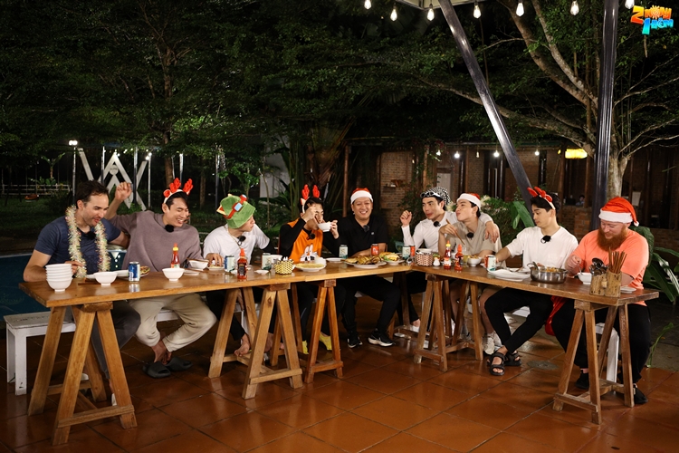 Trong đêm đại tiệc Giáng sinh – tập 22, gia đình 2 Ngày 1 Đêm đã có một bữa tiệc ấm áp và vui vẻ bên nhau, thưởng thức những món ăn vô cùng đa dạng, phong phú đến từ 3 nền ẩm thực khác nhau trên thế giới được chuẩn bị tỉ mỉ bởi dàn cast và những người bạn khách mời ngoại quốc. Cùng với lời chúc Giáng sinh an lành đến với mọi người, các thành viên đã cùng nhau làm ra những món ăn đại diện cho mỗi bản sắc văn hóa ở từng quốc gia với sự chăm chút, cẩn thận của người nấu. Sau khi các khách mời lần lượt chia sẻ về những điểm đặc trưng trong ngày Giáng sinh tại quê hương của mình thì “anh Già” Trường Giang đã nhận nhiệm vụ điều phối bữa tối. Các khách mời sẽ nấu 3 món ăn khác nhau, với Phúc Mập (Brandon Hurley) là món hamburger đặc trưng của Mỹ, Will Courageux với món crepe ngọt ngào của Pháp và cuối cùng là anh chàng đến từ Hàn Quốc – Jongrak với món canh kim chi. Sau những chia sẻ của Phúc Mập về việc đã lâu không nấu ăn do bị “nóc nhà” cấm vào bếp, Trường Giang vì lo lắng cũng vào hỗ trợ Phúc Mập hoàn thành món ăn, Ngô Kiến Huy sẽ phụ trách các món nướng còn “em Út” nhận nhiệm vụ nướng khoai, Kiều Minh Tuấn cũng háo hức thử sức làm bánh crepe, duy chỉ có cặp đôi Dương Lâm – Cris Phan âm mưu tách đoàn diễn tiểu phẩm.