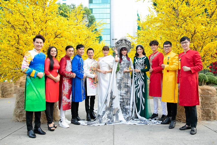 Á Khôi Băng Châu và MC Anh Quân cùng dàn nghệ sĩ Hiền Mai và con trai Tony, MC Quỳnh Hoa, MC Anh Quân, ca sỹ Đoan Trường, Á khôi- diễn viên Băng Châu, MC Quốc Bình, nhà thiết kế Minh Hùng, ca sỹ Diễm Phương, MC Dương Hồng Phúc, đạo diễn Đỗ Kim Khánh…diện áo dài rực rỡ trên Phố Ông Đồ