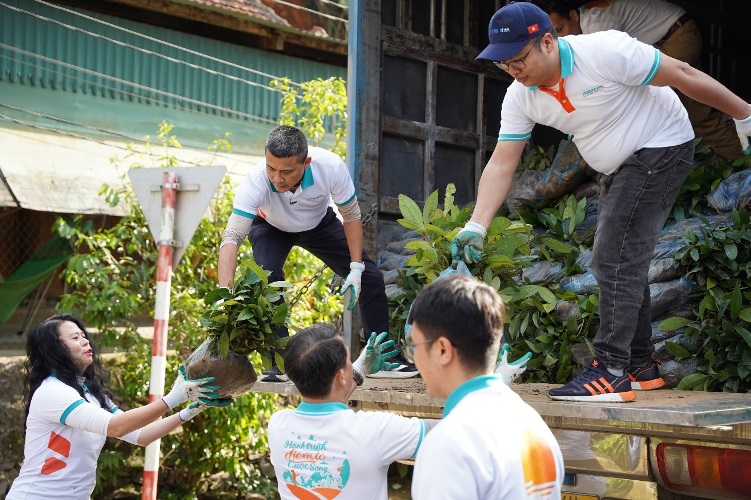 Các TNV ABBANK cùng người dân xã Thông Thụ tham gia trồng cây quế giống – bước khởi đầu cho sinh kế bền vững tại địa phương