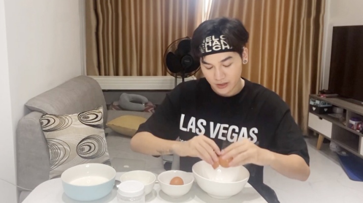 Ali Hoàng Dương tập tành nấu ăn trong thời gian giãn cách