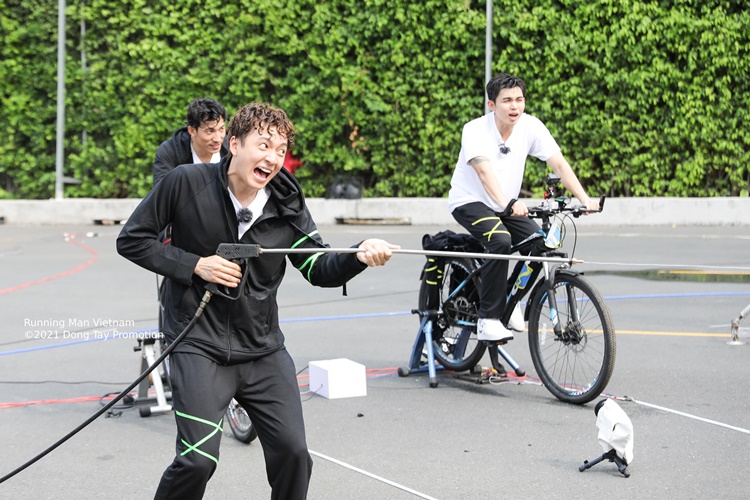 Thúy Ngân – bóng hồng thứ 2 của Running Man Vietnam – Chơi Là Chạy xuất hiện với trạng thái bị treo lơ lửng trên bể nước. Thử thách được đặt ra cho cả đội là phải kết hợp giữa đạp xe và hứng nước để cứu Thúy Ngân. Đây cũng là nguyên nhân dẫn tới vô vàn tình huống dở khóc dở cười dành cho dàn Cast. Mặc dù xuất hiện vô cùng ‘ngầu’ hứa hẹn sẽ ‘tới công chuyện’ nhưng anh cả Trường Giang lại vô tình… vấp té, làm ‘toang’ hết tất cả công sức của toàn đội. Bên cạnh đó, cô nàng Thúy Ngân cũng ‘xu cà na’ không kém khi tự mình trượt tay té thẳng vào bể nước. Theo chia sẻ ngoài lề của Thúy Ngân, cô đã dậy sớm chuẩn bị trang điểm hết 3 tiếng nhưng chỉ với 15 phút xuất hiện, vẻ bề ngoài rạng rỡ xinh đẹp của “Hoa Săn Mồi” đã tiêu tan.