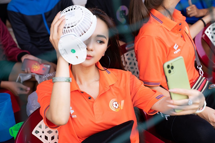 Đến miền Tây ủng hộ cho những người anh em, bạn bè của đội bóng nghệ sĩ tham gia đá giao lưu và tặng quà cho những người có hoàn cảnh khó khăn, Ánh Linh vừa hào hứng vừa hạnh phúc khi truyền được cảm hứng tích cực đến cộng đồng.
