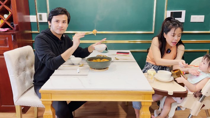 Đồng thời cũng trong thời gian này, cậu bé Xoài cũng có được sự “huấn luyện” đặc biệt từ ba mẹ. Tuy tuổi còn nhỏ, nhưng cậu bé đã trưởng thành và tự lập hơn rất nhiều. Từ những việc như vệ sinh cá nhân, phụ chăm em đến ngay cả “lăn vào bếp”, cậu bé đều có thể phụ giúp. Trang Lou vui vẻ dự đoán về tương lai sau khi hết dịch, tài nấu nướng của Xoài và chồng chắc hẳn sẽ tăng thêm vài bậc.