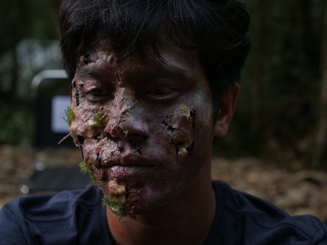 Chuyên gia hóa trang Tony Nguyễn Art cố gắng thể hiện những vết thương theo đúng theo thực tế của một người bị thương trong rừng sâu. “Điều khó khăn với tôi là thể hiện sự chân thực của vết thương. Khi mới bị, nó sẽ là máu tươi nhưng khi qua vài ngày hoặc vài tiếng sau, vết máu và vết bầm sẽ đổi màu ngay”, anh nói.