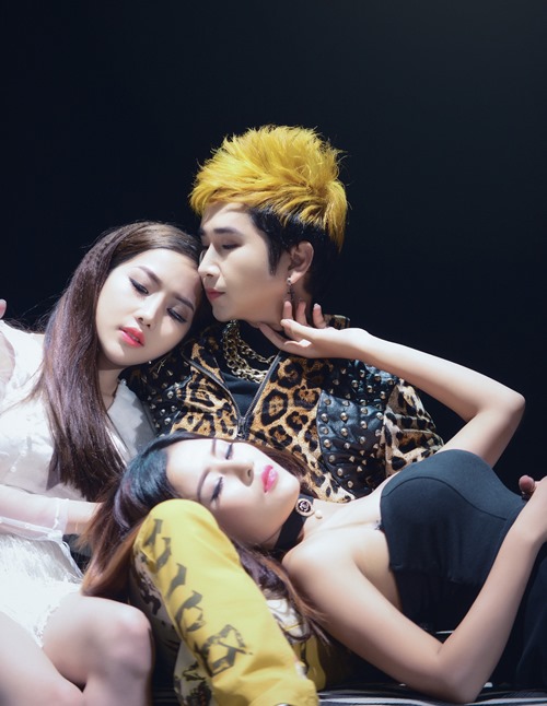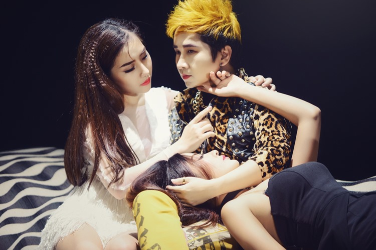 Nam ca sĩ vô cùng hào hứng khi đứng giữa dàn mỹ nữ và thể hiện những cảnh tình tứ nóng bỏng trong trong MV mới "Chơi Vơi" trong lần tái xuất này.