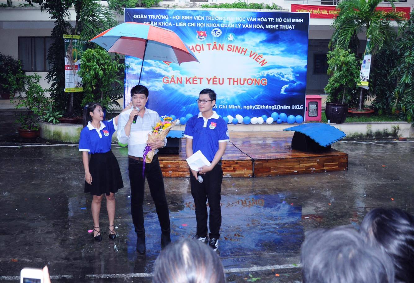 Ca sĩ Vỹ Khang đã khéo léo chia sẻ cảm nghĩ của mình khi tham gia chương trình với Trường, cũng như các bạn sinh viên Trường Đại Học Văn Hoá TPHCM về ý nghĩa của đợt công tác xã hội này.