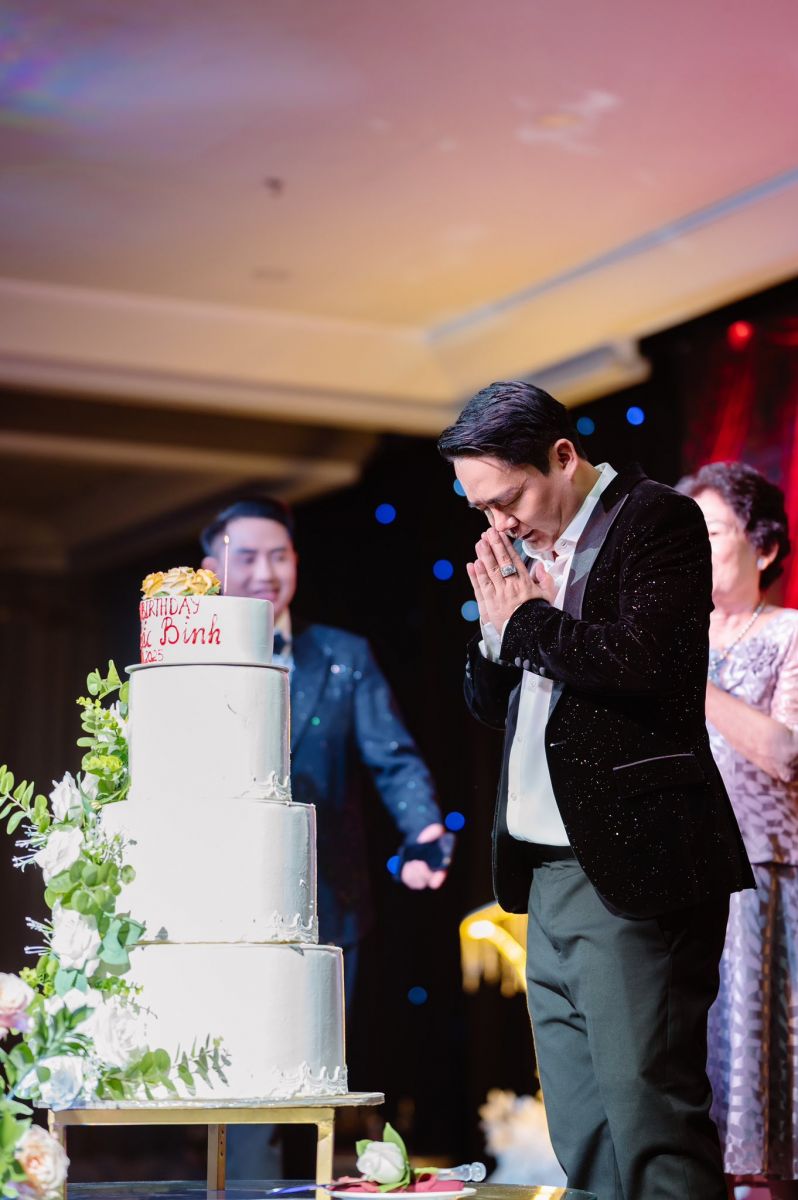 Trong tiệc sinh nhật, phần gây xúc động nhất là sự xuất hiện của hai khách mời đặc biệt. Đó chính là Ba Mẹ của anh từ Bến Lức - Long An lên TP.HCM chung vui cùng con trai. Anh tâm sự: “Ba Bình năm nay đã 74 tuổi, còn Mẹ thì 67 tuổi. Đây là 2 người mà Bình luôn yêu thương và trân quý. Ba Mẹ chính là nguồn động lực rất lớn để bản thân Bình luôn luôn phấn đấu và cố gắng trong công việc, cũng như không làm bất cứ điều gì khiến cho Ba Mẹ buồn lòng…”