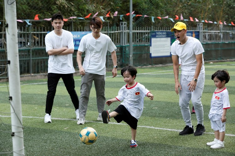 Trái ngược với tính nhút nhát ban đầu, Đậu vô cùng phấn khích khi được chơi bóng cùng các anh. Cậu bé liên tục có những biểu cảm đáng yêu khi đưa bóng vào lưới. Nếu 2 anh Andy hợp tác thực hiện theo lời thầy Công Vinh dạy thì Đậu một mình “cân” hết sân bóng. Cậu bé cùng Xoài nhiệt tình dẫn bóng vào lưới bằng mọi cách. Hai nhóc tì kháu khỉnh liên tục chạm bóng bằng tay khiến cho thầy Công Vinh phải "chào thua".