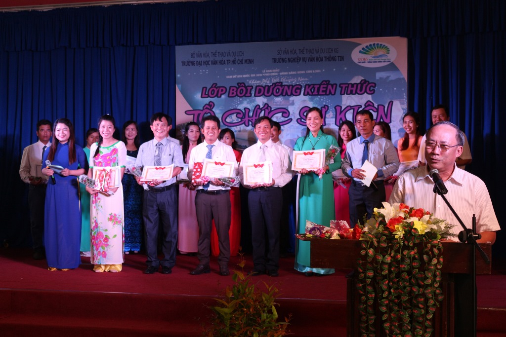 Nhằm đáp ứng nhu cầu đào tạo nhân sự tổ chức sự kiện tại tỉnh Kiên Giang, đặc biệt đây là tỉnh có gần 20 sự kiện được tổ chức trong năm du lịch Quốc Gia. Sở VHTT & DL tỉnh Kiên Giang đã kết hợp cùng trường Đại học Văn hóa TP.TPHCM mở lớp Tổ chức sự kiện đầu tiên tại tỉnh. Lớp được tổ chức tại trường Nghiệp Vụ Văn hóa Thông tin tỉnh Kiên Giang với sự tham gia của 25 học viên là các giám đốc, phó giám đốc, cán bộ Trung Tâm Văn hóa- Thể Thao- Thông tin và cán bộ văn hóa của một số cơ quan ban ngành trong tỉnh.