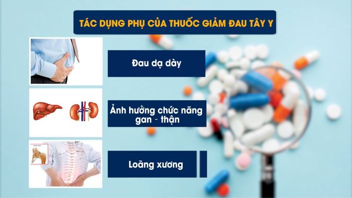 Đối với phương pháp dùng thuốc, bệnh nhân có thể sử dụng một số loại thuốc giúp phục hồi sụn khớp, thuốc giảm đau theo chỉ định của bác sĩ. Tuy nhiên, đối với phương pháp này sẽ gây ra một số tác dụng phụ như rối loạn đường tiêu hóa, ảnh hưởng đến chức năng của gan, thận và tăng tình trạng loãng xương do sử dụng thuốc quá nhiều.