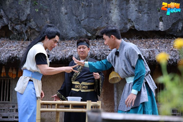 Sau khi diễn ra cuộc “đại chiến đá gà” tại Làng Việt Cổ Cố Viên Lầu, các “tráng sĩ” 2 NGÀY 1 ĐÊM được bồi bổ bằng một bữa ăn vô cùng thịnh soạn. “Ông xã” Trường Giang vui sướng ngại ngùng ra mặt khi được “người vợ chu đáo” Nhã Phương gắp tận chén, nhưng tận hưởng chưa được bao lâu đã phải “ngậm ngùi câm nín” khi phát hiện “mỹ nhân kế” của bà xã, kế hoạch “thả con tép bắt con tôm” của Nhã Phương khiến “đệ nhất mỹ môi” Lê Dương Bảo Lâm “bất bình” đến mức “nuốt trọng”. “Anh già” Trường Giang quyết ra tay đòi lại công bằng cho đồng đội, mặc kệ sự bao biện của đội thua, “đá” tình nghĩa vợ chồng “ra chuồng gà” đem món ăn về lại đúng chủ nhân. “Đau khổ” vì mưu kế không thành, Nhã Phương chỉ đành “than thân trách phận”, khiến “muội muội” Thúy Ngân không đành lòng liền đề xuất trao đổi món để “tỷ tỷ” dễ ăn hơn.