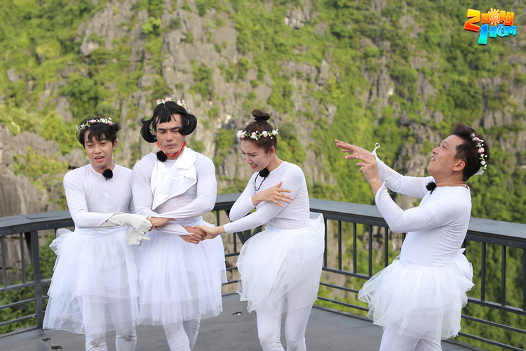 Không hổ danh là ekip lầy lội “cấp bao giông” với độ chịu chơi không thể “trúa hề” hơn khi đã biến một nửa dàn cast 2 Ngày 1 Đêm Tập 13 trở thành đàn thiên nga trắng “bay lên” Hang Múa để trình dàn mà múa ballet vô cùng “tao nhã” và đặc sắc. Trải qua 486 bậc thang đá, đàn thiên nga đã có đôi phần mệt mỏi nhưng dưới sự cổ vũ của mẹ Dương Lâm mà Giang ca cùng mọi người đã hừng hực quyết tâm chạy lên phía trước. Chạm tới đỉnh Hang Múa, dù gió khá mạnh nhưng không thể thổi đi ý chí quyết tâm hòa mình vào vở nhạc kịch “Đàn thiên nga bất ổn". Tiếng nhạc vang lên cũng là lúc vén màn buổi biểu diễn, các động tác thành thục, “uyển chuyển” làm khán giả liên tưởng đến các chú thiên nga trắng không biết sợ hãi trước bất kì kẻ thù nào cũng như dàn cast vẫn luôn không biết “e ngại” trước các thử thách mà ekip đưa ra. Đến một phân cảnh đàn thiên nga bị “săn đuổi”, Trường Giang hóa thân thành bác thợ săn “pha ke” chĩa “uất hận” vào chú thiên nga Dương Lâm “tằng tằng” té ngửa rớt cả bộ tóc đạo cụ. Sau màn giải lao kéo dài khoảng 5 giây, tiếng nhạc kéo biểu diễn nhanh chóng quay trở lại với khán giả cùng với sự “diễn sâu” của Dương Lâm khi anh không ngừng giả bộ “co giật” đồng điệu với tiếng “tằng tằng” của Trường Giang. Trải qua các giây phút hài hước không kém phần ”kịch tính” thì đàn thiên nga đã hoàn thành xuất sắc buổi biểu diễn. Không thể phủ nhận dư âm cùng “sức nóng” mà vở diễn mang lại, nhất là khi được chiêm ngưỡng các chú thiên nga “bất ổn”, chắc rằng không ít khán giả sẽ có một trận “cười ra nước mắt”.
