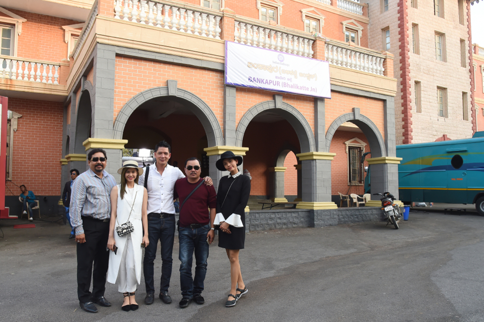 Diễn viên Bình Minh cùng Trương Quỳnh Anh, Trương Thị May, đạo diễn Phương Điền, phóng viên Lữ đắc Long tại Ấn Độ