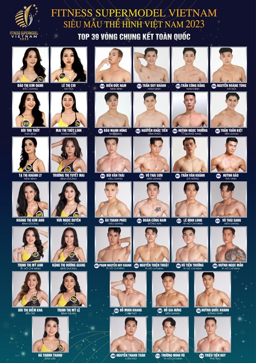Trải qua hơn hai tháng tuyển chọn với hàng trăm hồ sơ đăng ký dự thi đến từ khắp mọi miền đất nước, các thí sinh đến từ 22 tỉnh thành trên toàn quốc đã nô nức quy tụ tại vòng Sơ loại và Bán kết khu vực miền Bắc tại Hà Nội và Bán kết khu vực miền Nam tại TP.HCM. Ban tổ chức cuộc thi Siêu mẫu Thể hình Việt Nam - Fitness Supermodel Vietnam 2023 đã phải làm việc đầy căng thẳng để tuyển chọn ra Top 39 thí sinh Fitness Supermodel Vietnam 2023 xuất sắc nhất toàn quốc.