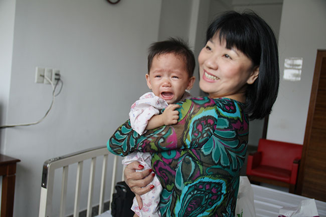 Ca sĩ Cẩm Vân đến thăm bé Tường Vy (8 tháng tuổi) trước khi cháu vào phòng mổ