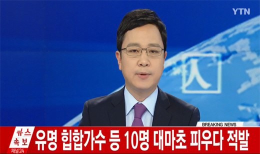 Truyền thông Hàn Quốc đưa tin vụ 10 nghệ sĩ Hàn dính vào ma túy. Ảnh: Mydaily.
