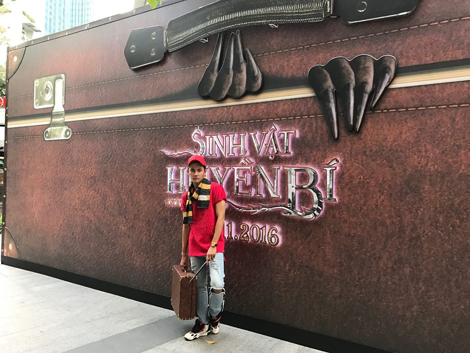 Soái ca của "Giọng ải giọng ai" bất ngờ xuất hiện tại địa điểm khám phá vali khổng lồ của phim "Sinh vật huyền bí" cùng bạn bè của anh để cùng hóa thân thành nhân vật trong phim.