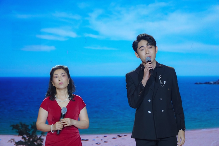 Sau những phút giây chia sẻ câu chuyện truyền cảm hứng của mình, Trần Gia Minh Châu đã có sân khấu song ca kết hợp cùng nam ca sĩ trẻ Trung Hiếu với ca khúc Ninh Thuận Quê Mình.