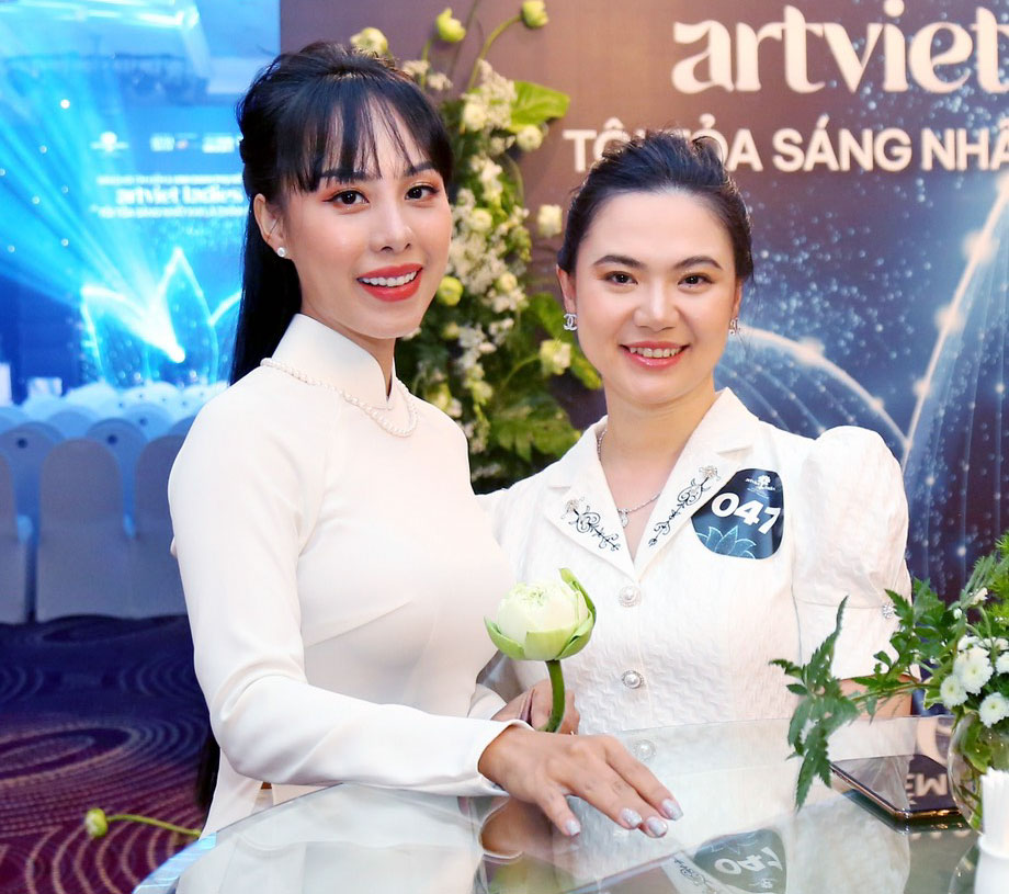 Phan Sắc Cẩm Ly (phải) cùng MC Đỗ Phương Thảo - thành viên BTC ArtViet Ladies