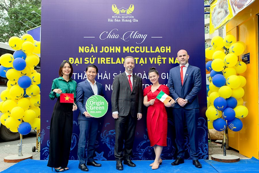 Phan Sắc Cẩm Ly cùng ông Trần Văn Trường chào mừng đại sứ Ireland tại Việt Nam