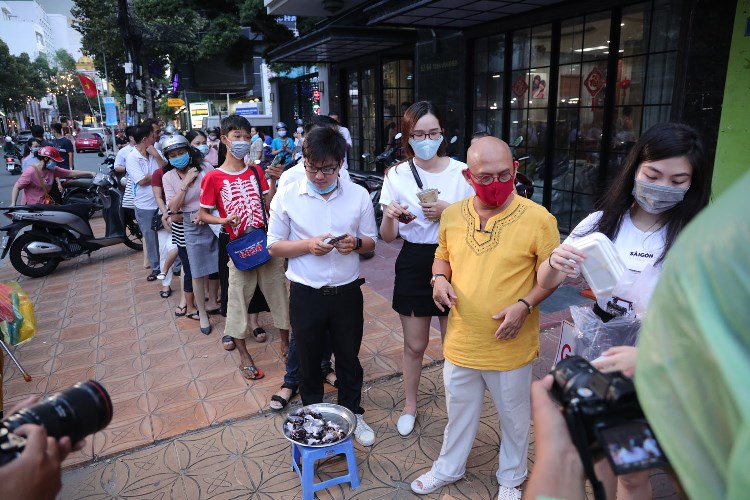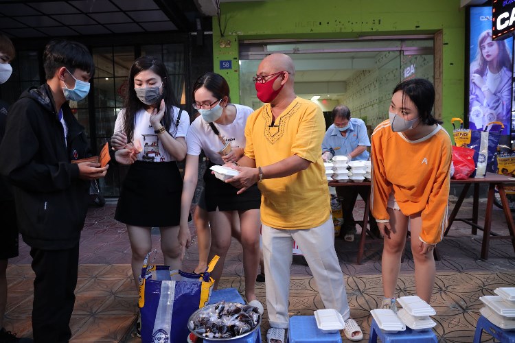 Đúng giờ, “quầy hàng” đặc biệt của Color Man “mở cửa” và đón những vị khách đầu tiên. Mở hàng cho chú Hưng là hai bố con dễ mến, sau đó là một cặp mẹ con khác rồi đến những cô cậu học sinh mới lớn, những anh chị thanh niên đã đi làm. Cứ thế, 1 hộp gỏi, 2 hộp gỏi, 3 hộp gỏi được bán đi với nhiều giá tiền từ khác nhau, từ 50 ngàn cho đến 500 ngàn. Thậm chí có những vị khách sẵn sàng chi 1 triệu cho 1 hộp gỏi chỉ để ủng hộ chú.