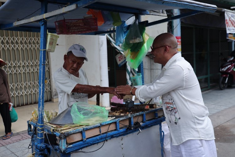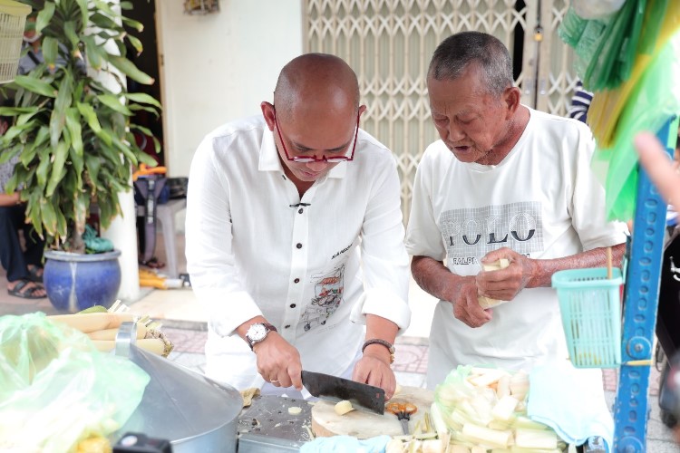 Từ sáng sớm, vợ chồng cụ Định đã lọ mọ dậy róc mía. Tiếng lọc cọc chặt mía, chuẩn bị cho gánh hàng đã trở thành âm thanh quen thuộc của khu phố nơi đây. Hơn nửa thế kỷ, cụ Định gắn bó cùng xe mía, rong ruổi trên nhiều con đường, tuyến phố đã trở thành một phần ký ức tươi đẹp của nhiều người. Hình ảnh cụ ông tóc ngả màu sương, làn da đen sạm vì nắng gió, sức khỏe không còn được như xưa nhưng đôi bàn tay chai sạn ấy vẫn thoăn thoắt, điệu nghệ róc mía, chặt những khúc mía đều tăm tắp không khác gì một người nghệ sĩ tài hoa với con dao sắc bén. Trong khi cụ Định chặt mía, cụ Nuôi sẽ chầm chậm bỏ từng miếng mía vào bịch để bán cho khách. Nhìn những bịch mía, bịch nào bịch nấy cũng được cụ bà nhét chặt cứng, căng đét vì sợ ít, ta càng cảm mến hơn tính hào sảng của vợ chồng cụ.