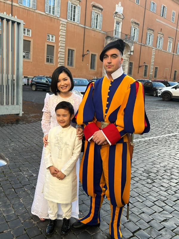 Mới đây, Mathis Thiên Từ và mẹ là doanh nhân Thủy Tiên được Đức Giáo Hoàng FRANCIS tiếp kiến tại Tòa Thánh Vatican (Ý). Con trai Đan Trường hào hứng trong cuộc gặp gỡ này. Thiên Từ được Đức Cha rất yêu mến.
