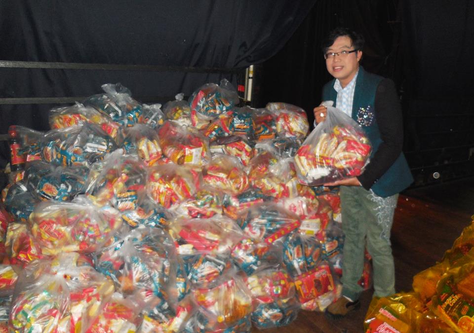 Đạo diễn - Nhà báo Thanh Hiệp chuẩn bị quà trao tặng NS nghèo trong chuyến đi trao quà của CLB Phóng viên Văn hóa Văn nghệ