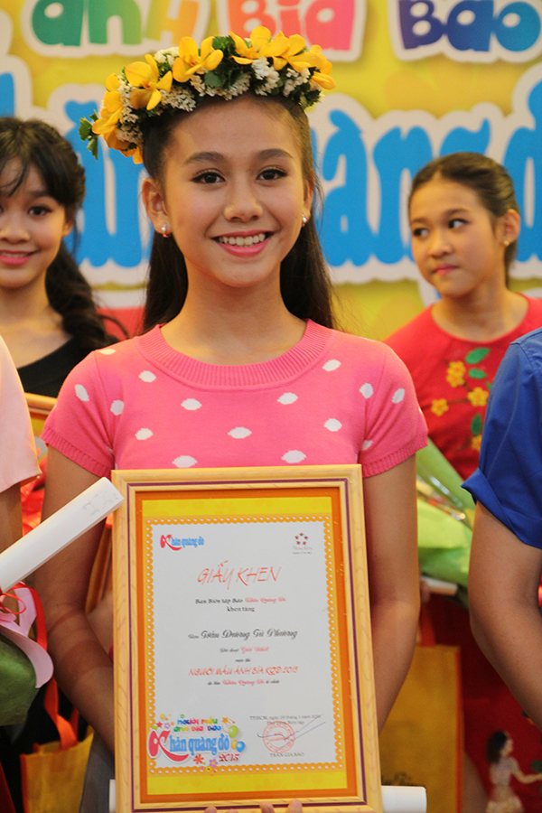 Trần Dương Tú Phương (lớp 6 trường Lê Ngọc Hân, TP.Mỹ Tho, tỉnh Tiền Giang) đoạt giải nhất cuộc thi “Người mẫu ảnh bìa báo Khăn Quàng Đỏ 2015”.