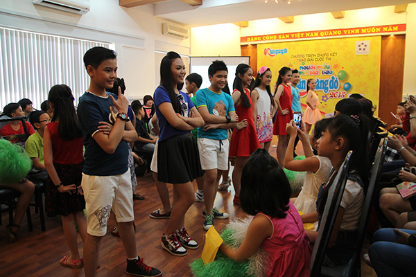 Top 20 cuộc thi “Người mẫu ảnh bìa báo Khăn Quàng Đỏ 2015” biểu diễn thời trang trong lễ trao giải.