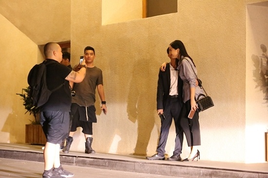 Hạ Vi có mặt tại sự kiện khá sớm. Người đẹp đất Cảng diện quần tối màu kết hợp với áo sơ mi đơn giản. Trong khi đó, Cường Đô la cố ý đến khá muộn để tránh gây chú ý cho truyền thông nhưng hình ảnh cả hai xuất hiện cùng nhau vẫn không thoát khỏi ống kính tại sự kiện.