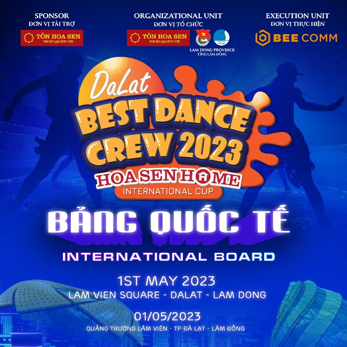 Chương trình “Dalat Best Dance Crew 2023 – Hoa Sen Home International Cup” do Hệ thống Siêu thị VLXD và Nội thất Hoa Sen Home (Tập đoàn Hoa Sen) phối hợp với Tỉnh đoàn Lâm Đồng và Công ty Truyền Thông Bee tổ chức.