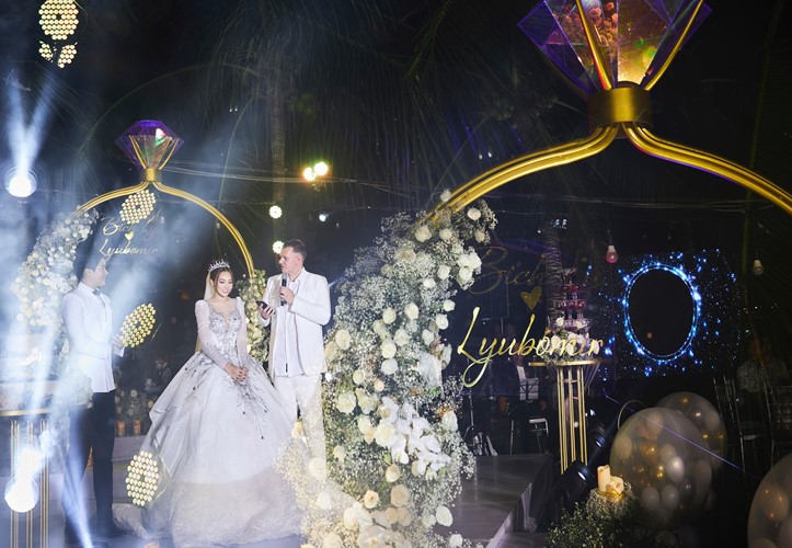 Được biết, hôn lễ của Bích Ly cùng ông xã điển trai ngoại quốc LyuboMir tại một Khu biệt thự ven sông Sài Gòn với view sang chảnh. Bên cạnh đó, hôn lễ của Bích Ly được trang trí 100% bởi hoa tươi nhập khẩu từ Hà Lan cùng sân khấu được thiết kế riêng với concept hình “Nhẫn cưới” rất đặc biệt ấn tượng, tinh tế và sang trọng.