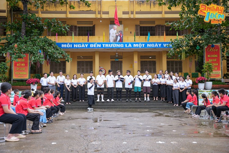 Không chỉ đứng chơi cùng các em, các thành viên 2 Ngày 1 Đêm bỗng hóa “sao đỏ” canh chừng xem ai làm chưa đúng để bắt lên phạt. Tương tác tự nhiên, gần gũi vừa có sự hài hước của nghệ sĩ khiến các em học sinh rất vui vẻ, tham gia buổi giao lưu rất nhiệt tình Dương Lâm không những làm “sao đỏ” mà còn “hòa tan” chịu phạt chung với các em nhỏ vì làm sai đề bài, chưa có chữ “tôi bảo” mà đã nhảy lên lướt sóng rất nhiệt tình khiến các em học sinh được một phen cười khoái chí.