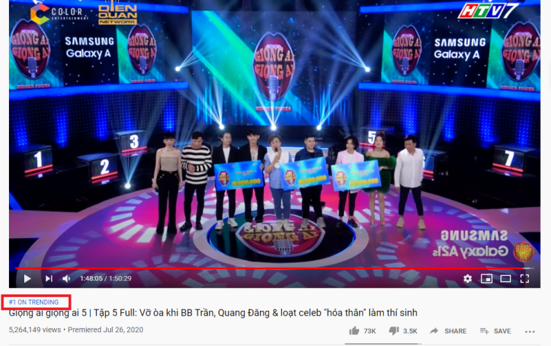 Sau 4 tập phát sóng với sức lan tỏa dữ dội, Giọng Ải Giọng Ai tập 5 tiếp tục chứng tỏ sức hút của “gameshow triệu views” khi tiến thẳng top 1 trending của YouTube.