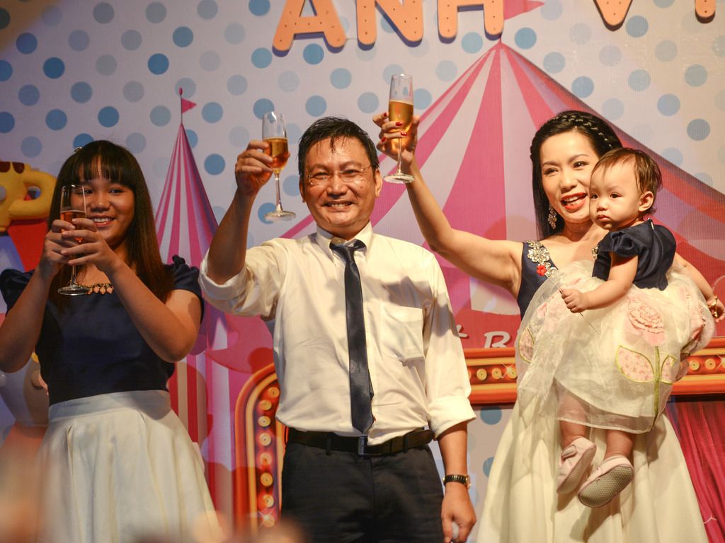 Gia đình Trịnh Kim Chi hạnh phúc trong ngày thôi nôi con gái thứ hai