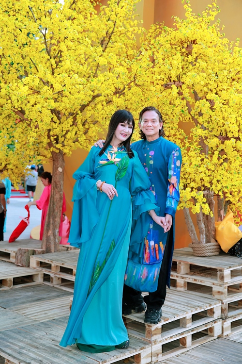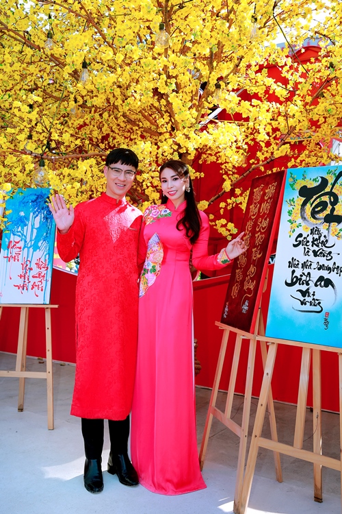 Diễn viên Hiền Mai cho biết năm nay chị cùng ông xã Hoàng Minh cùng diện áo dài đôi chụp hình để lưu lại những tấm hình kỷ niệm.