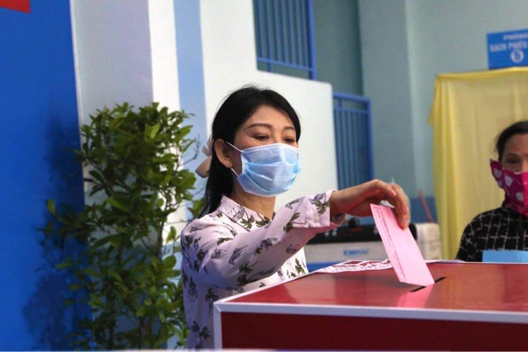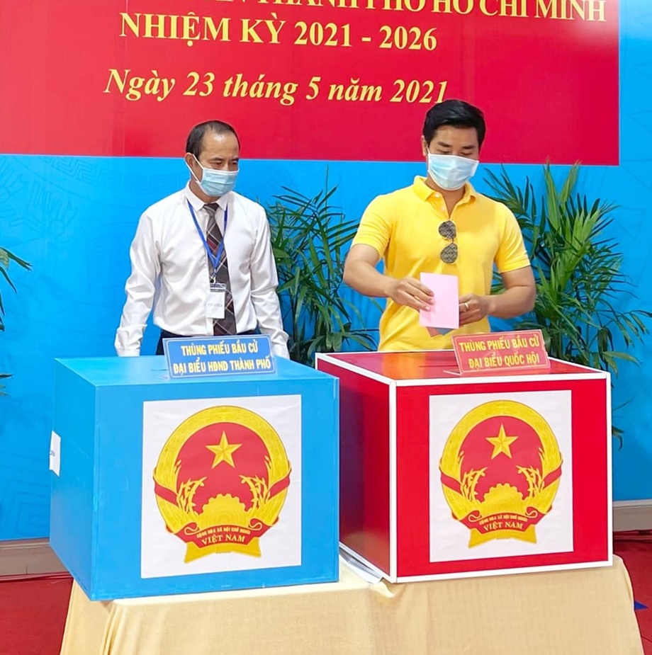 NSUT Mỹ Uyên hưởng ứng ngày bầu cử. Để phòng chống dịch Covid-19, tất cả người đi bầu cử đều đeo khẩu trang