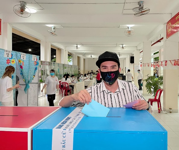 MC Nguyên Khang chia sẻ ảnh bầu cử với dòng trạng thái: "Sáng nay tôi đã dậy thật sớm để đi thực hiện quyền và nghĩa vụ của một công dân"