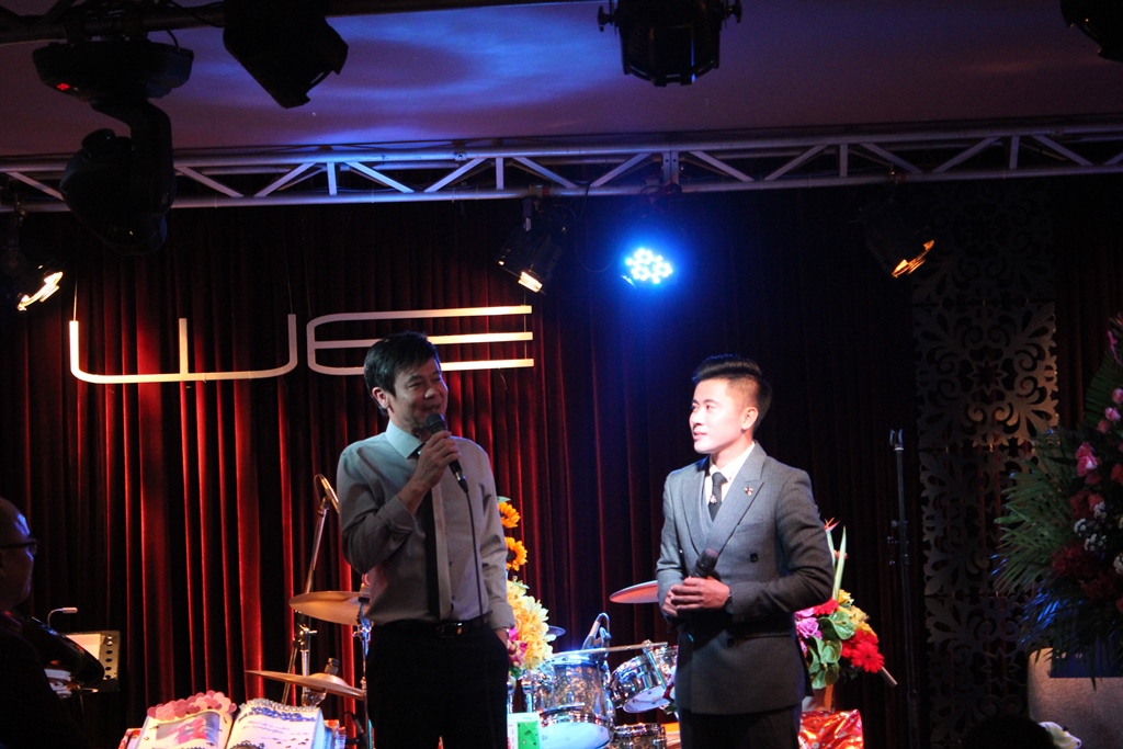 Dù rất bận rộn nhưng danh ca Thái Châu vẫn đến chúc mừng học trò Hoàng Minh Viễn ra mắt album đầu tay.