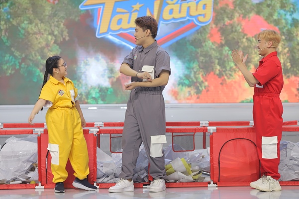 Không chỉ thế, khi MC Quốc Khánh giới thiệu Quỳnh Chi là một cô bé rất tài năng từng tham gia diễn xuất trong nhiều bộ phim nổi tiếng nên muốn cô bé thể hiện thêm một vài tài năng khác cho khán giả xem. Được mời, con gái của “Bố già” Trấn Thành liền nhanh nhảu đáp lời: “Con biết cái này không phải là tài năng nhưng ngày hôm nay con mang nó đến để thách đấu với chú Hoàng Phi. Con sẽ thách đấu với chú Hoàng Phi xem ai sẽ giải cục rubic này nhanh hơn”. Nghe lời khiêu chiến đầy tự tin của bé Ngân Chi, Hoàng Phi liền “rén” và cho biết cô bé đã thách đấu giải rubic với mình suốt 3 năm. “Bé nó đòi đấu 3 năm rồi đó. Lần nào đòi đấu tôi cũng bỏ chạy mà bé cứ thách hoài”, nam đội trưởng bất lực cho hay.
