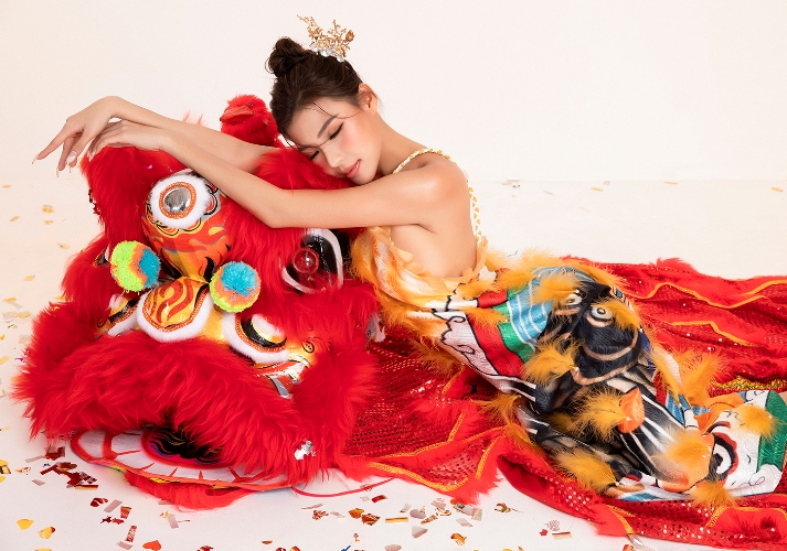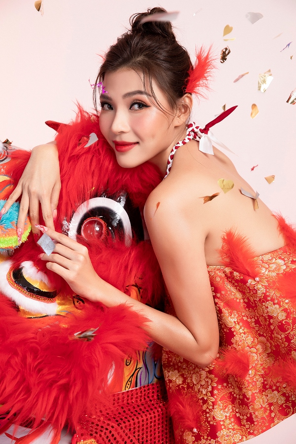 Lấy cảm hứng từ cô gái xuân, Thúy Diễm được nhiếp ảnh gia - đạo diễn phim Em là của em - Lê Thiện Viễn dàn dựng bối cảnh bên chú lân dũng mãnh và đầy kiêu hãnh. Với nét diễn sâu từ đôi mắt, Thúy Diễm trở nên cuốn hút và thần thái cùng sự kết hợp các đạo cụ đầy vui tươi, rộn rã.