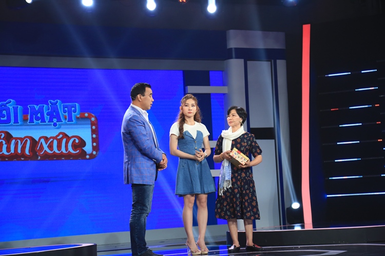 Trước khi mẹ bước ra để “đối mặt cảm xúc”, Ngọc Thảo một lần nữa nói muốn hỏi xem mẹ có hối hận vì đã sinh mình ra hay không. Nghe câu hỏi đó của Thảo, diễn viên Lê Giang cười nói: “Trời ơi, sao hối hận được cưng”, còn MC Quyền Linh lại bực bội: “Em mà hỏi câu đó thì em càng sai lầm hơn nữa. Có người mẹ nào lại nói là tao hối hận khi sinh ra mày đâu”.