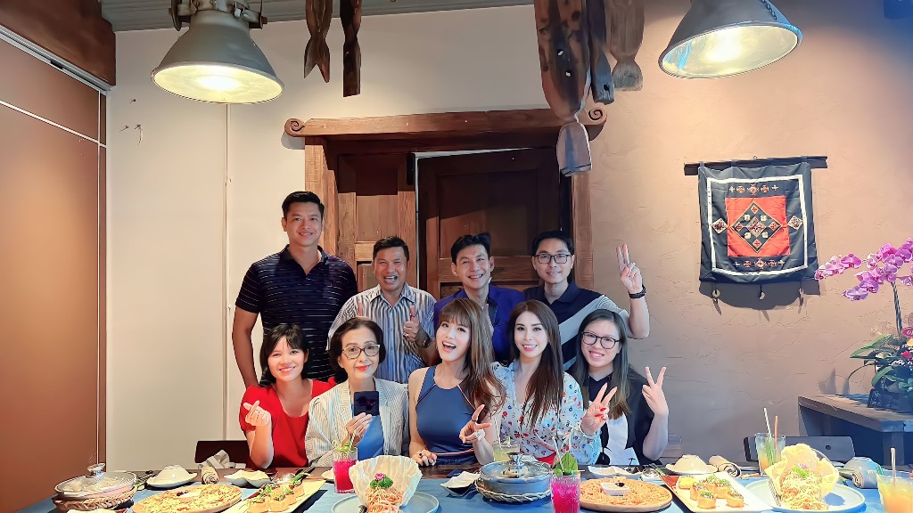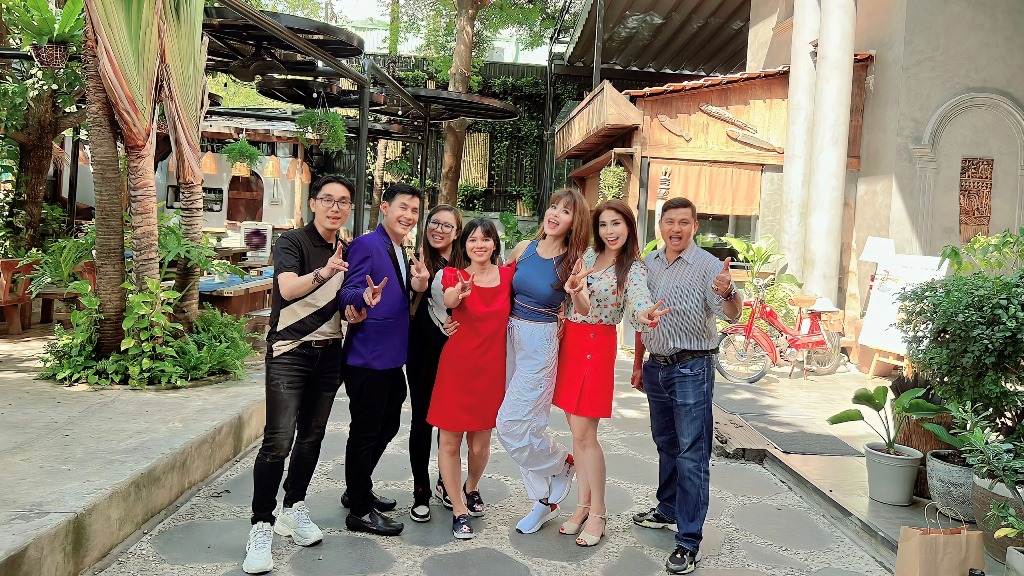Sau khi thưởng thức những món ăn ngon, diễn viên Lý Hương, ca sĩ Đoan Trường cùng Á hậu Băng Châu và một số bạn bè đã cùng nhau ghi lại những hình ảnh đẹp tại Chay Garden.