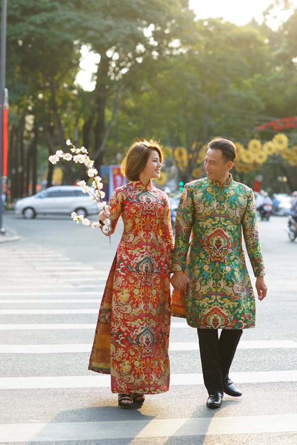 Hai cha con Nguyễn Hữu Tiến xuống phố ngày xuân