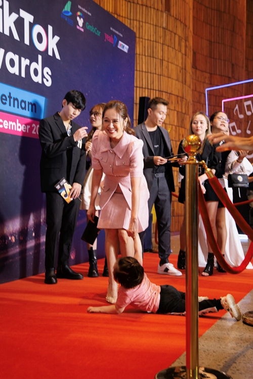 Diễn viên Thanh Thúy và cu Tết nổi bật trên thảm đỏ Tiktok Awards