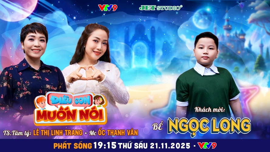 Điều Con Muốn Nói tập 20 với những tâm sự của bé Ngọc Long sẽ được phát sóng vào lúc 19h15 thứ Sáu 21/11/2025 trên VTV9. Chương trình Điều Con Muốn Nói do VTV9 phối hợp Jet Studio thực hiện.