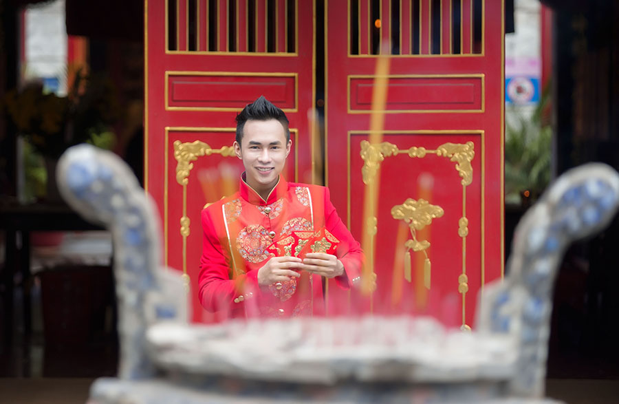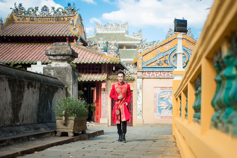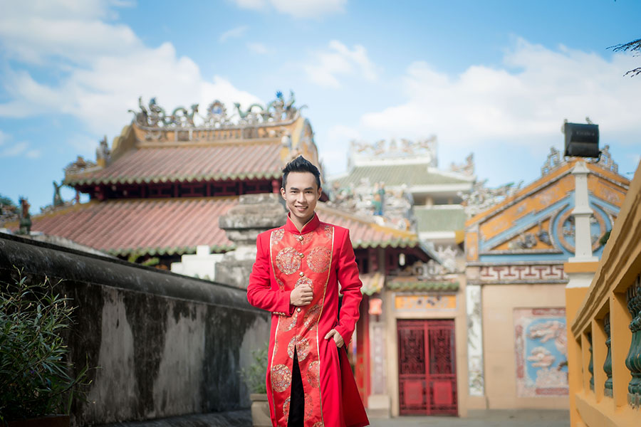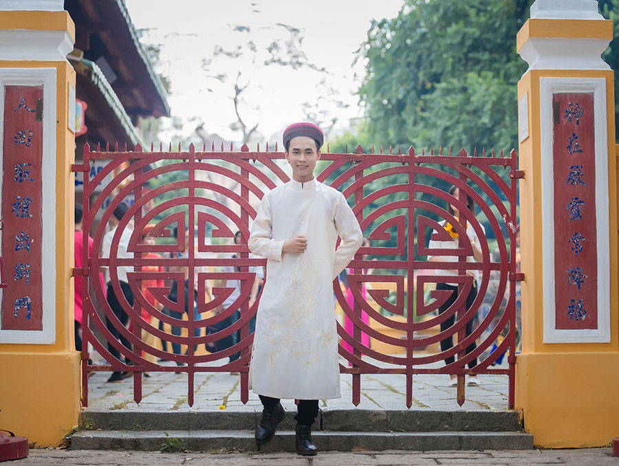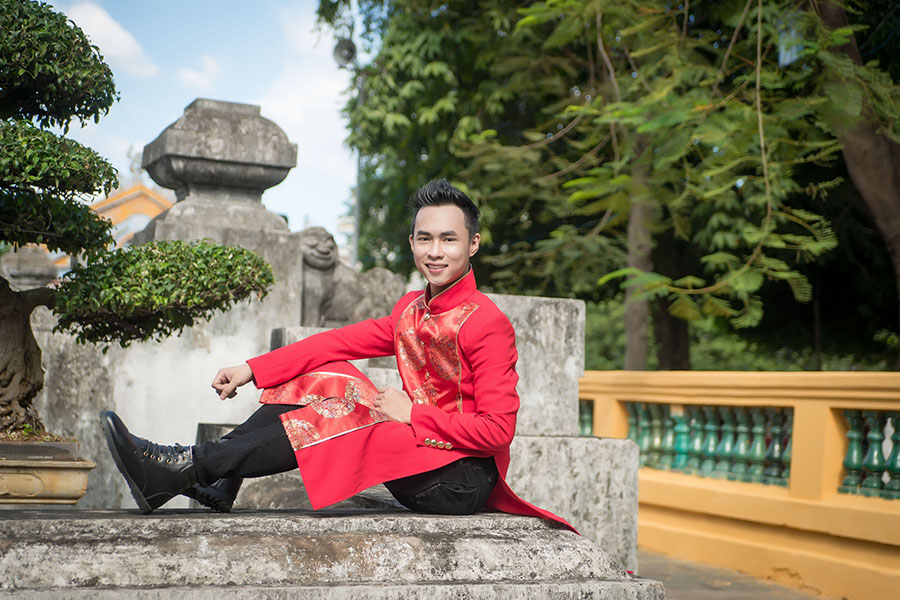 Tinh tế, sang trọng, nổi bật, đậm chất truyền thống là nguồn cảm hứng chung của ba nhà thiết kế danh tiếng trong làng showbiz Việt: NTK Nguyễn Tiến Doãn, NTK Đức Minh, NTK Tuấn Trần Centoria đã mang đến trong tà áo dài mà Đinh Quốc Anh mặc lên người.